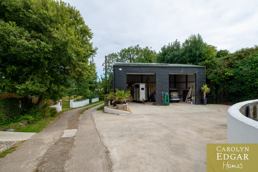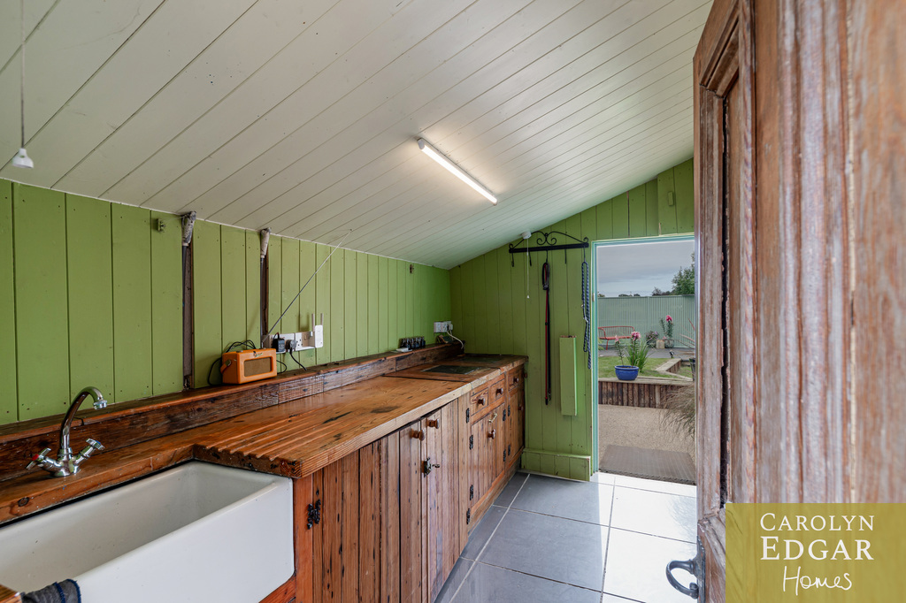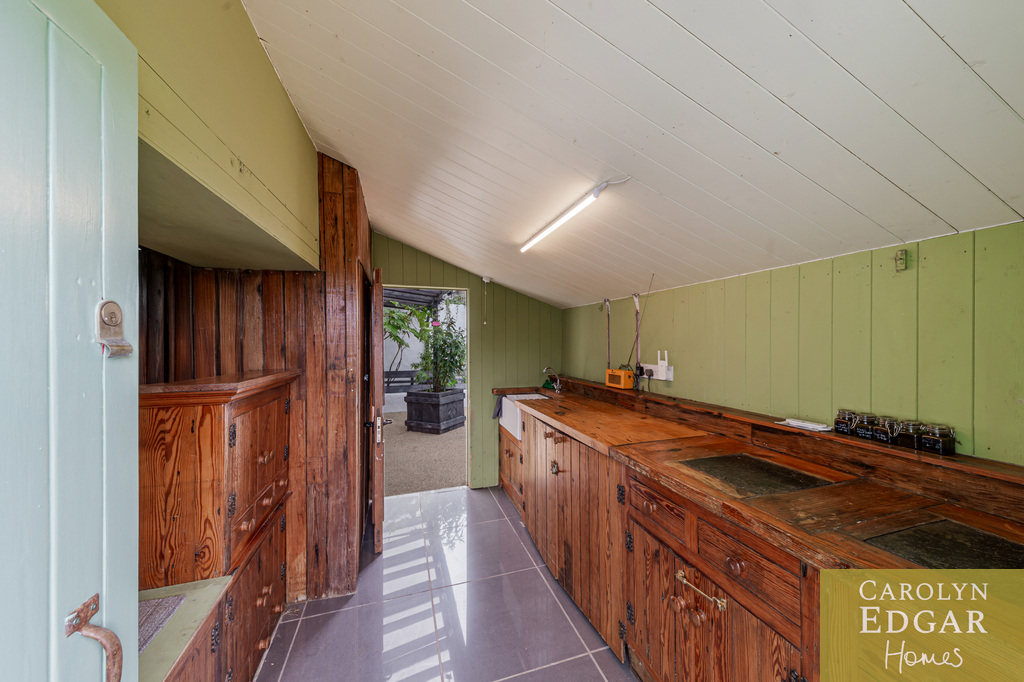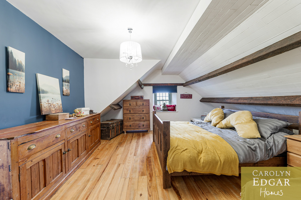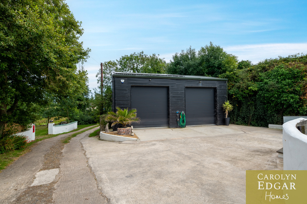 Externally, the property is enclosed in picturesque 2-acre surroundings, which includes original well, enclosed herb, vegetable and cottage gardens, one acre paddock, summer house with gorgeous views -a perfect home office and a raised viewing platform, an ideal spot for watching the sunset and enjoying these perfect surroundings. Additionally, the property features an extensive garage/workshop with twin electric doors, perfect for storing large equipment, boats, and more.