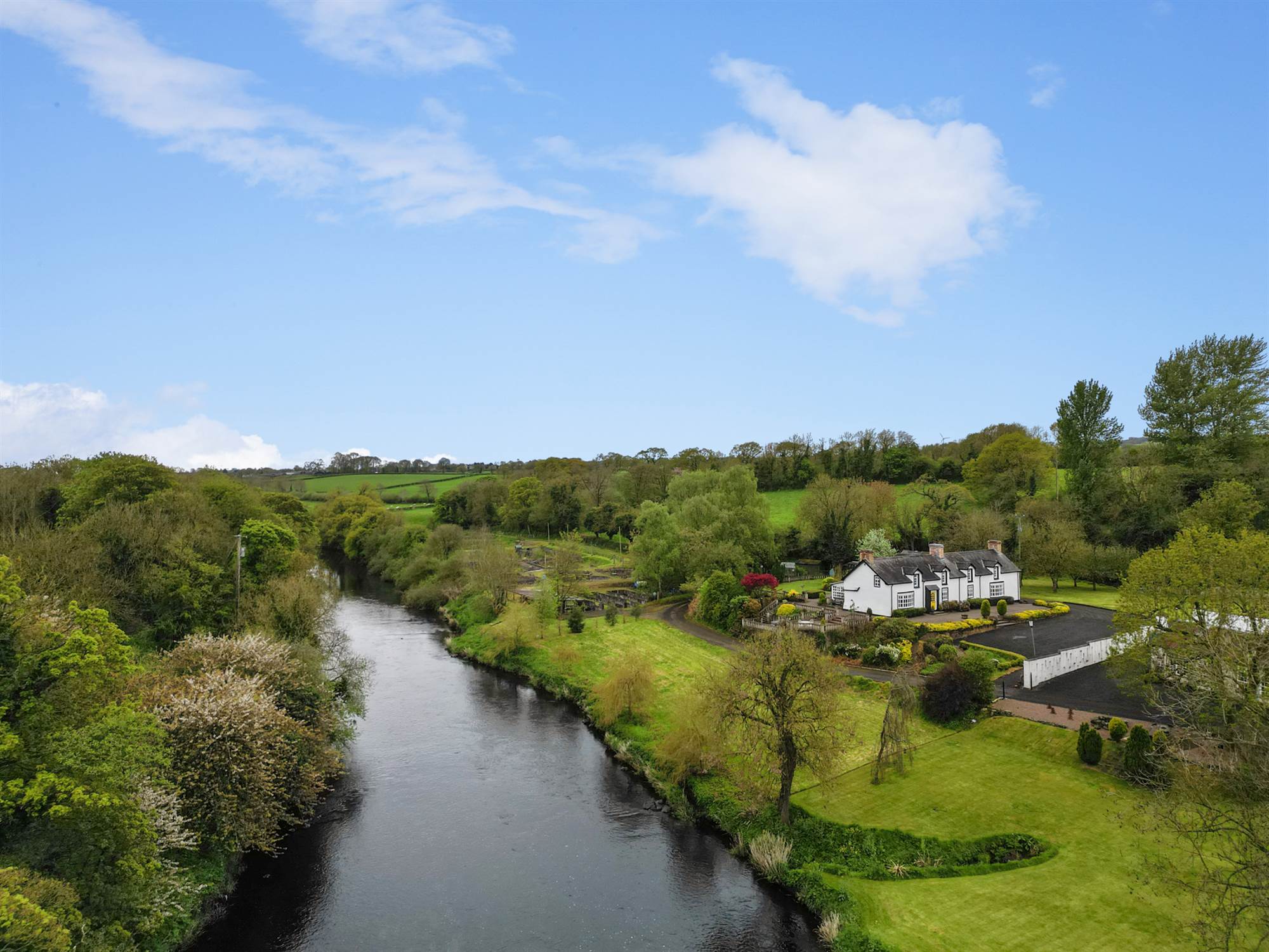 Beautifully situated on the periphery of the popular town of Randalstown this handsome detached country residence is positioned on a stunning elevated site with breath-taking views along the River Maine.