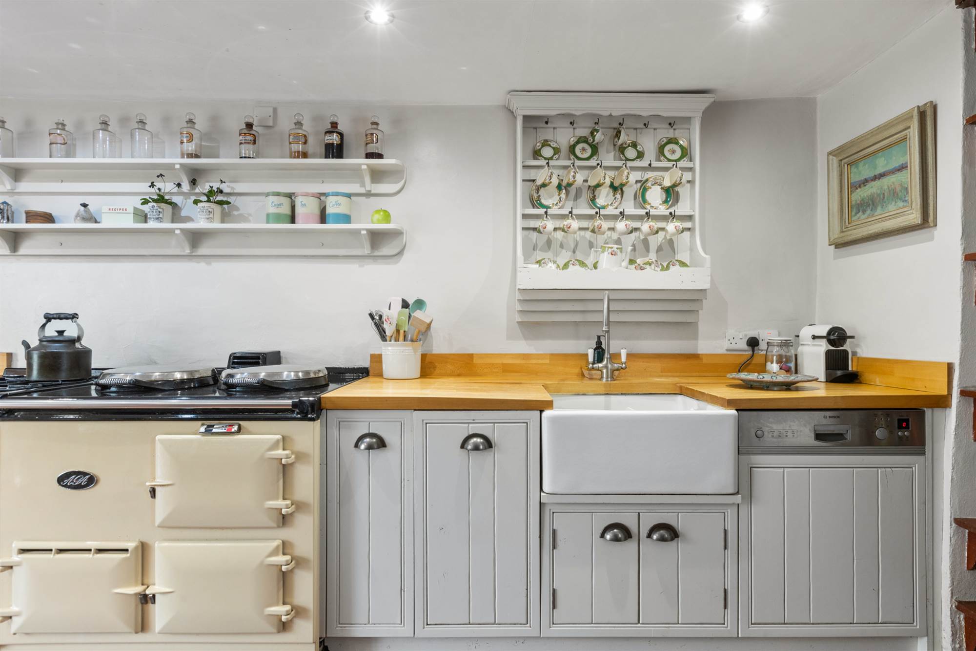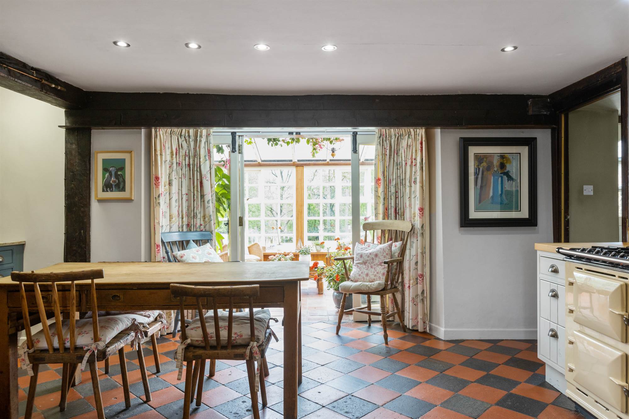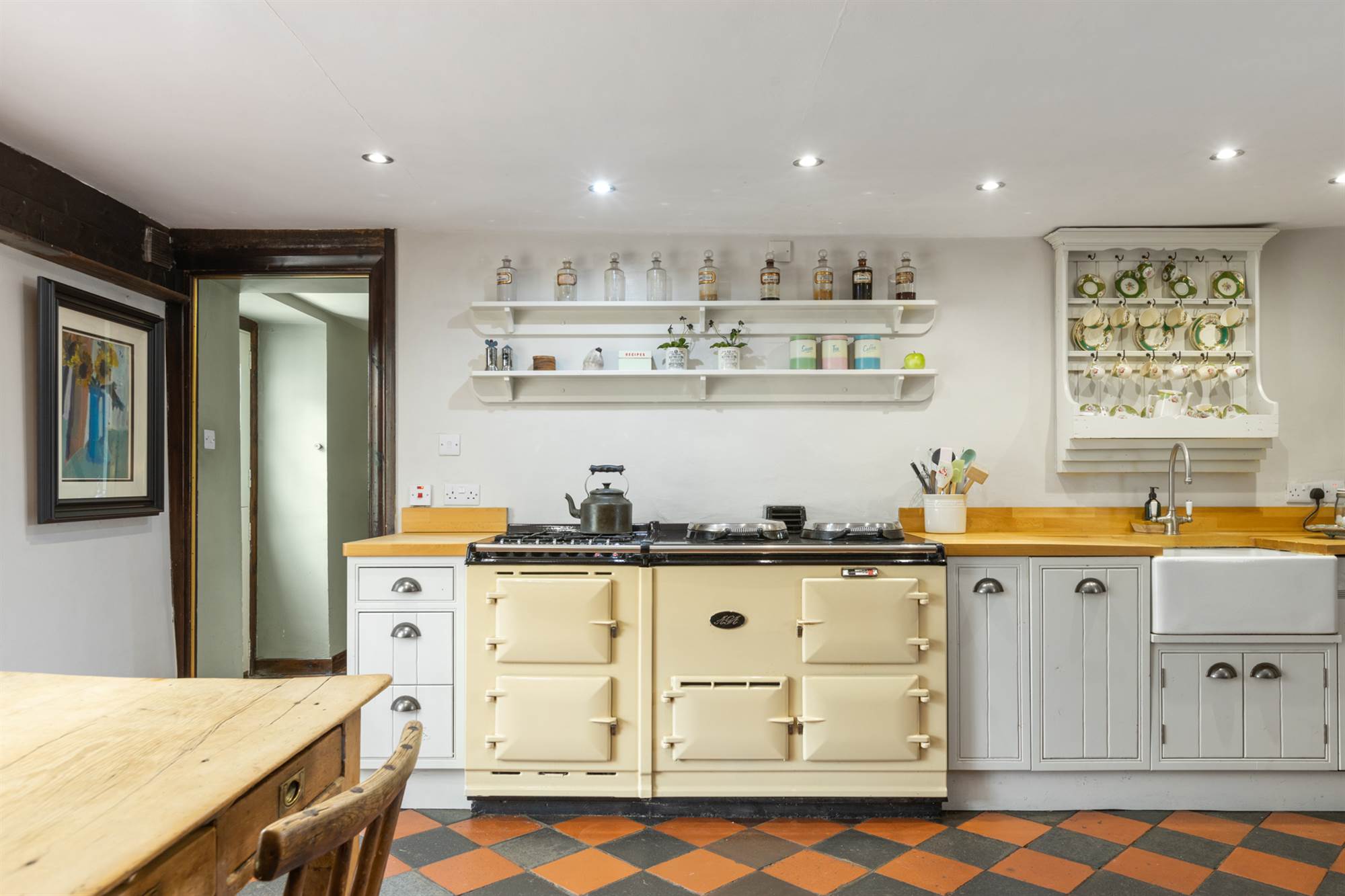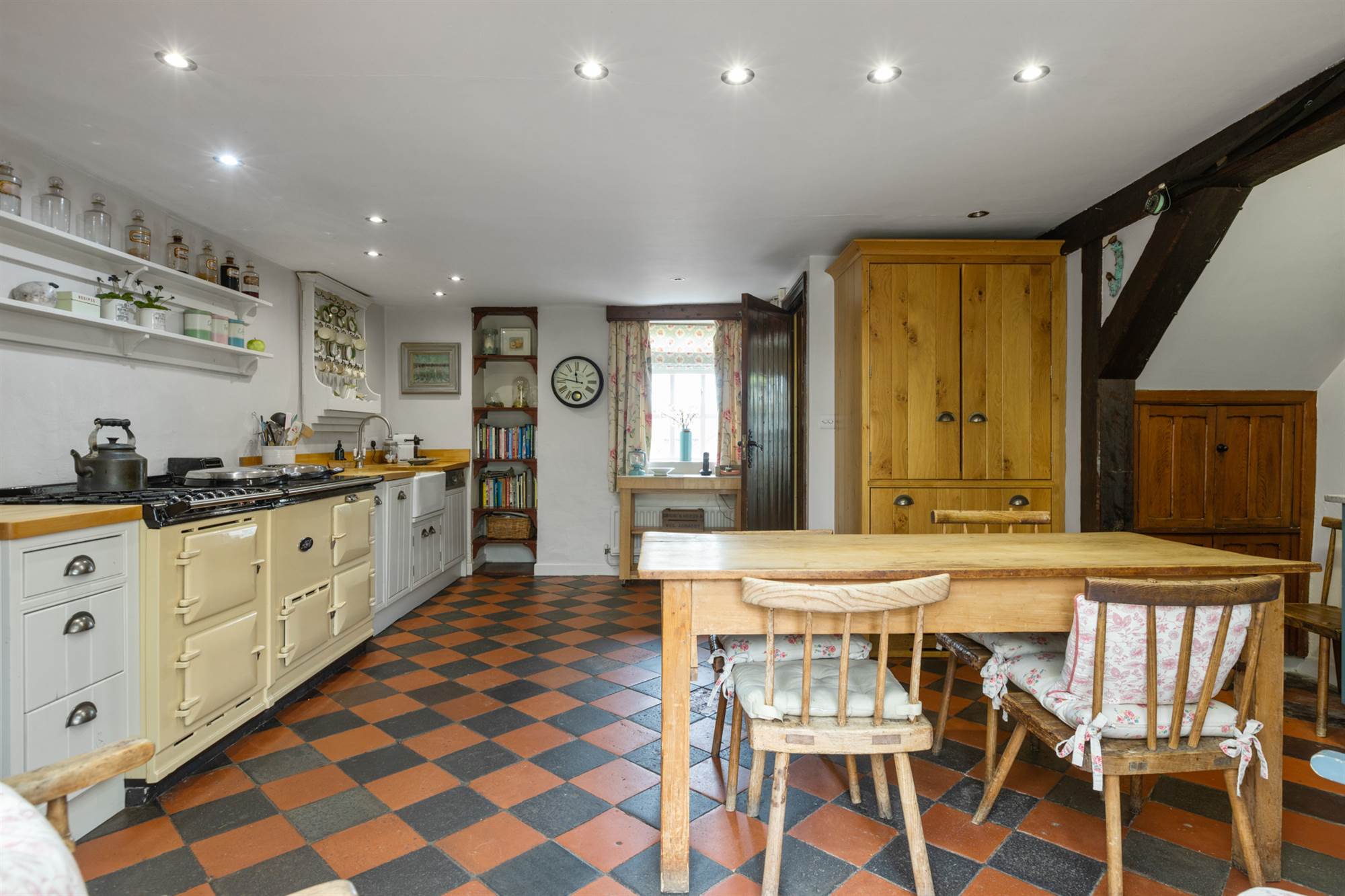 Country Style Kitchen with Aga Range and Casual Dining Area