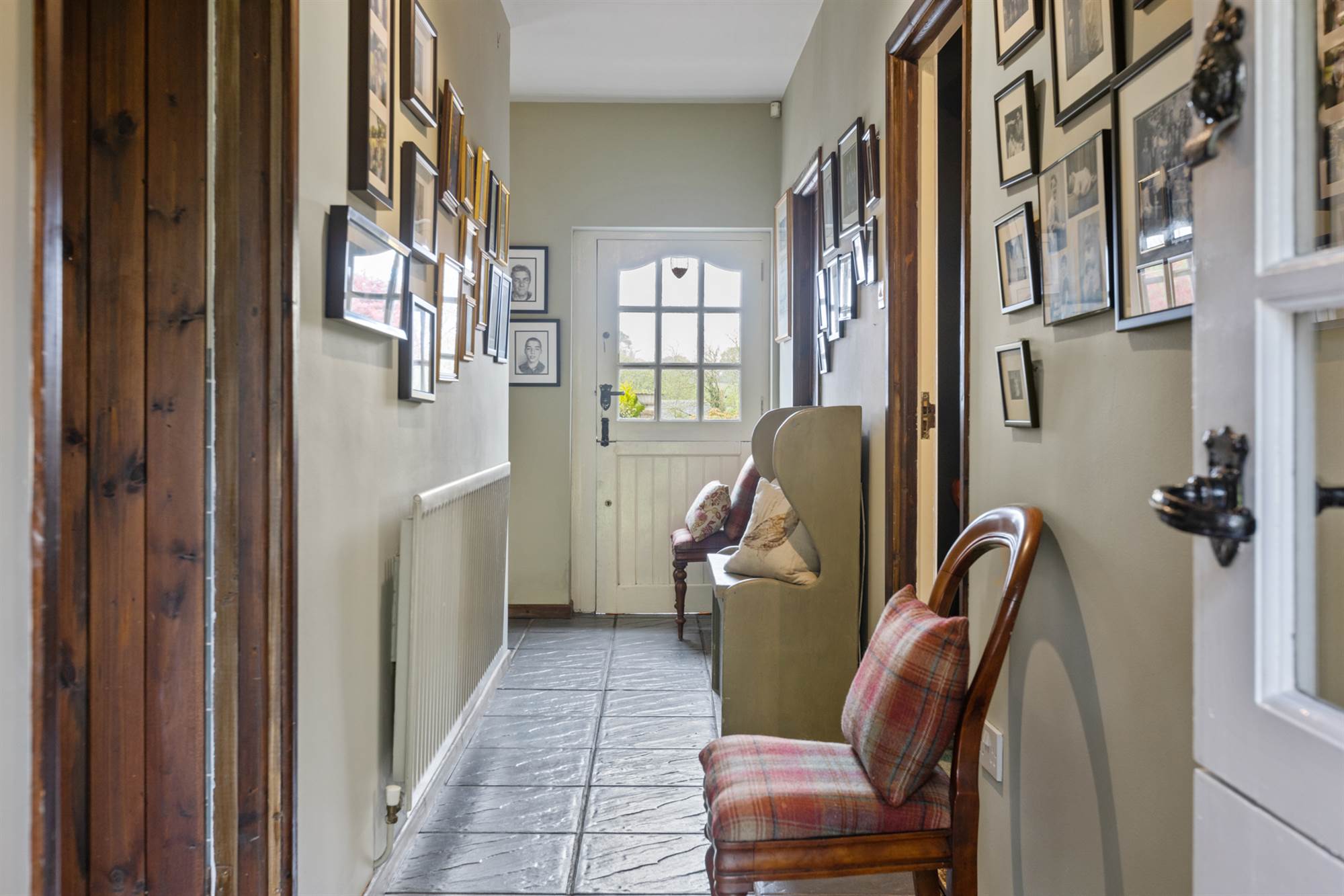 Hardwood door to tiled entrance hall.