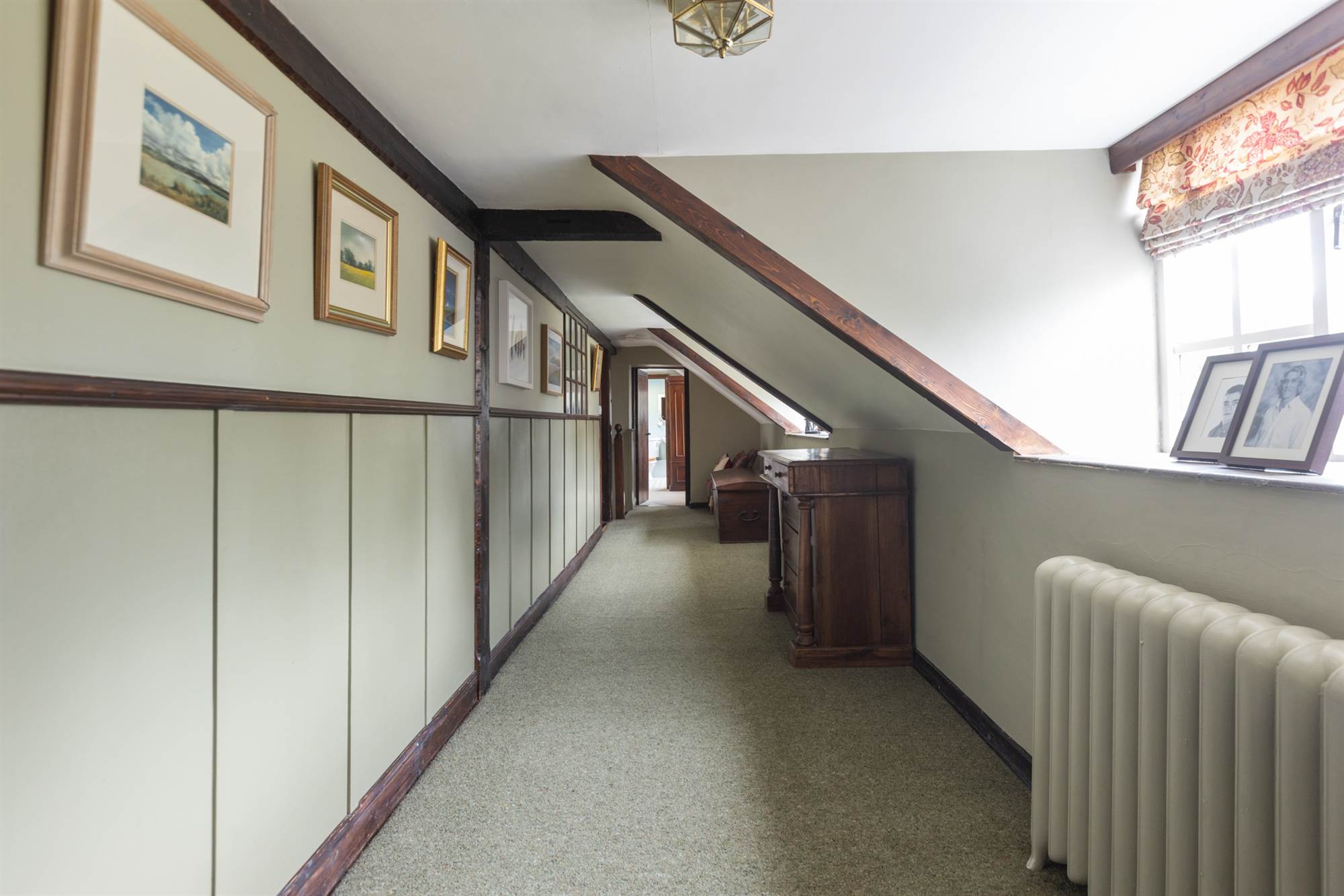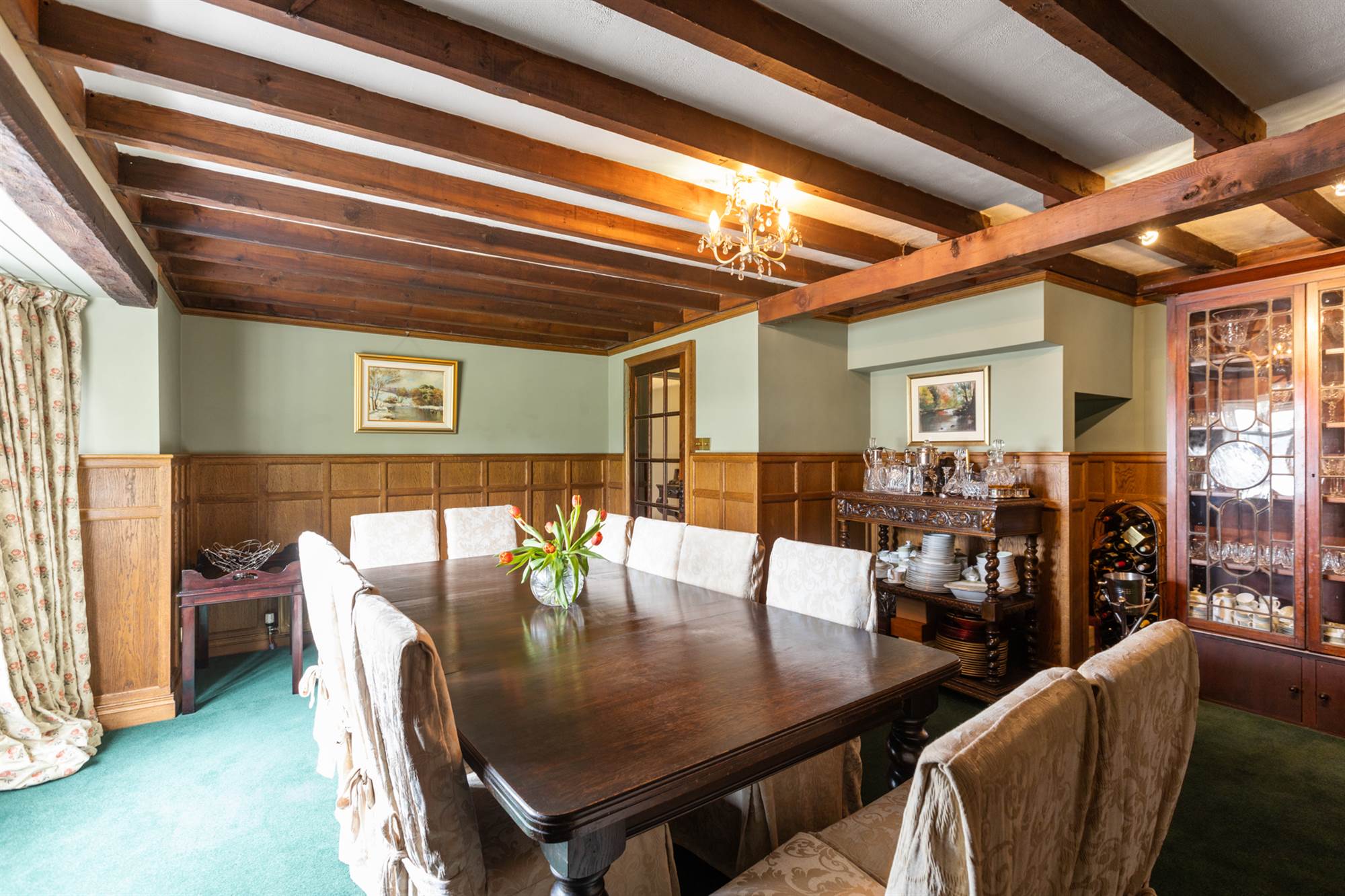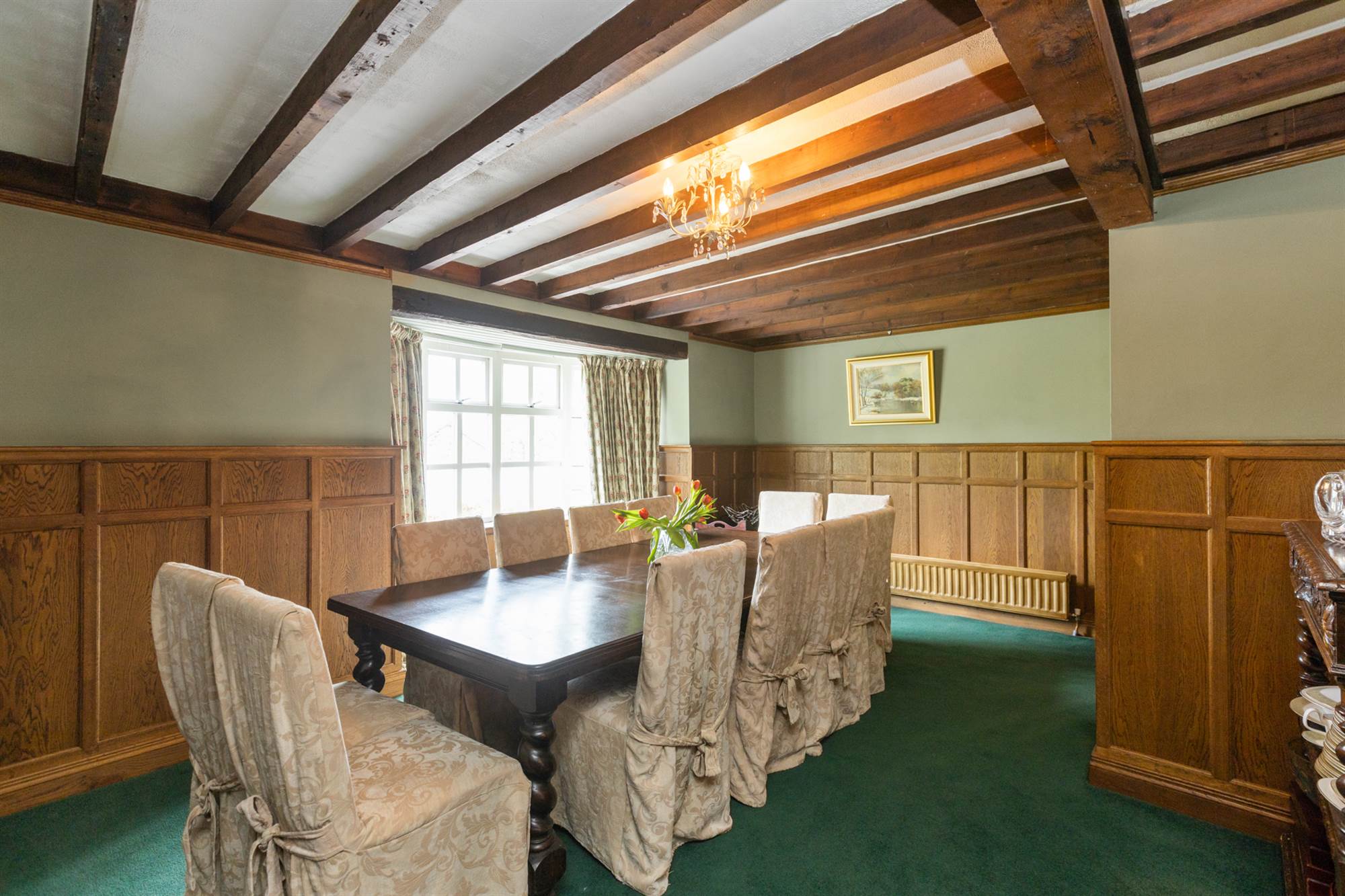 Marble fireplace. Exposed beams. Solid oak panelling.
