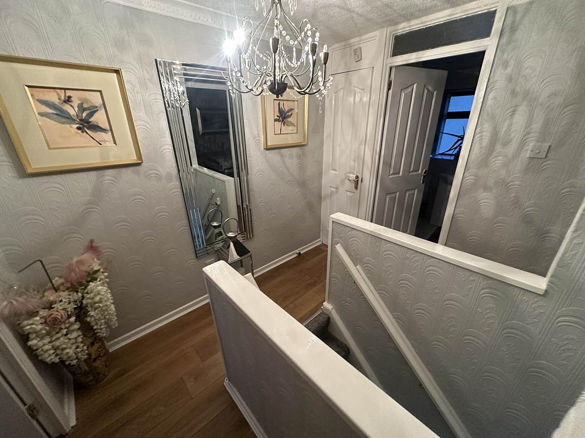 Upstairs, you will find three comfortable bedrooms, with the master bedroom featuring built-in storage, offering ample space to keep your belongings organised. The family bathroom is modern and practical, complete with a walk-in shower, adding a touch of contemporary style.