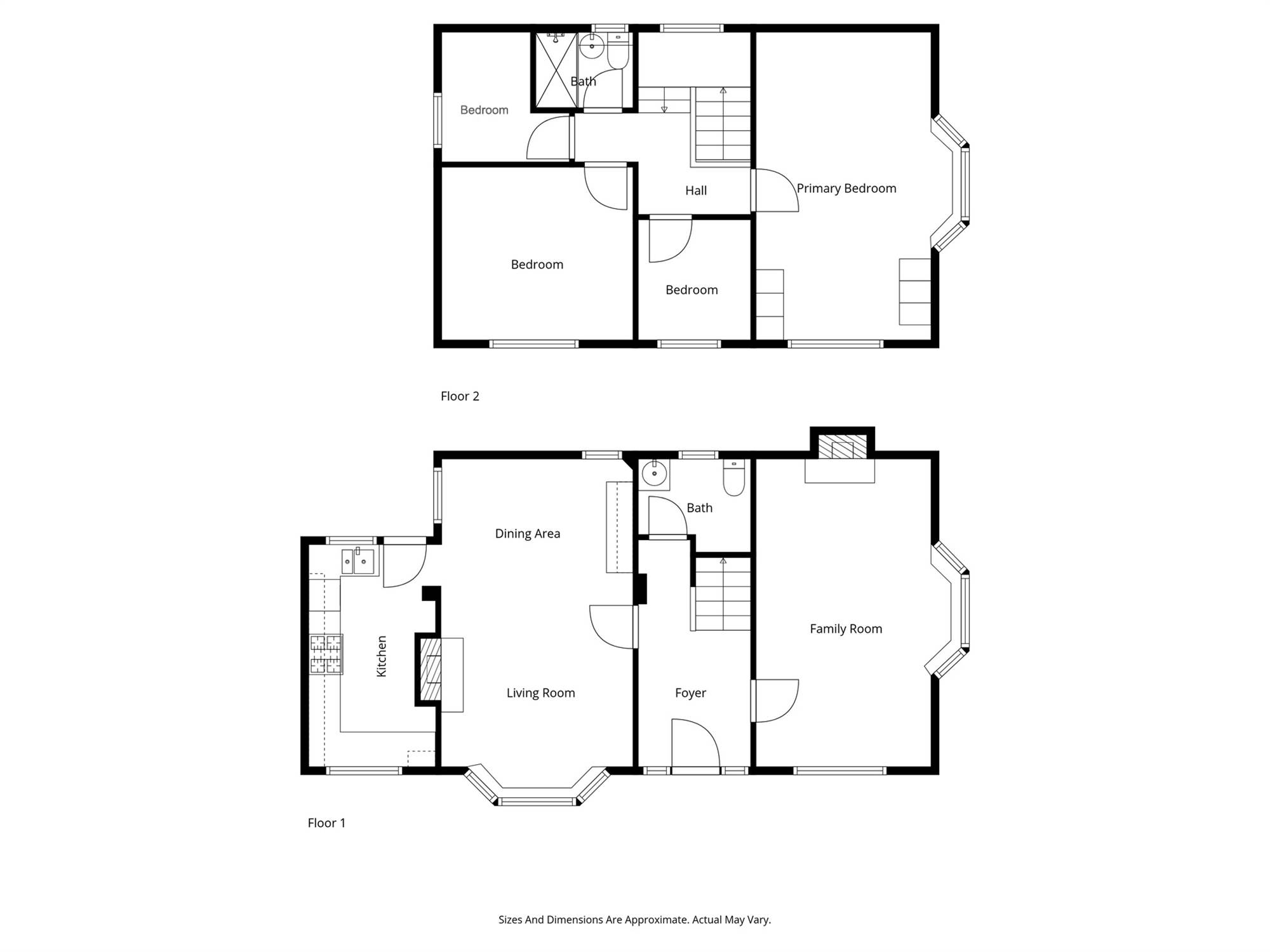 Family room with bay window and feature fireplace