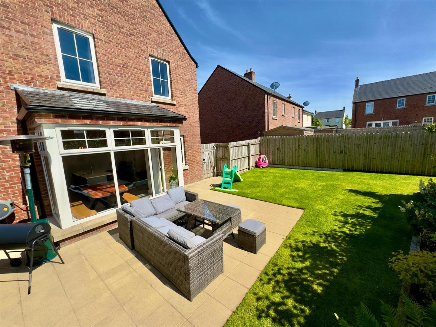 Externally there is a large detached driveway to side affording ample parking, open plan garden to front in lawn and a fully enclosed garden to rear in lawn with paved patio area and array of mature shrubs/plants which have been carefully positioned to create what is a stunning outdoor area that the whole family can enjoy throughout the year.