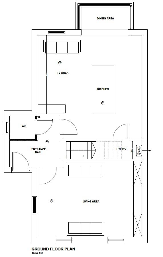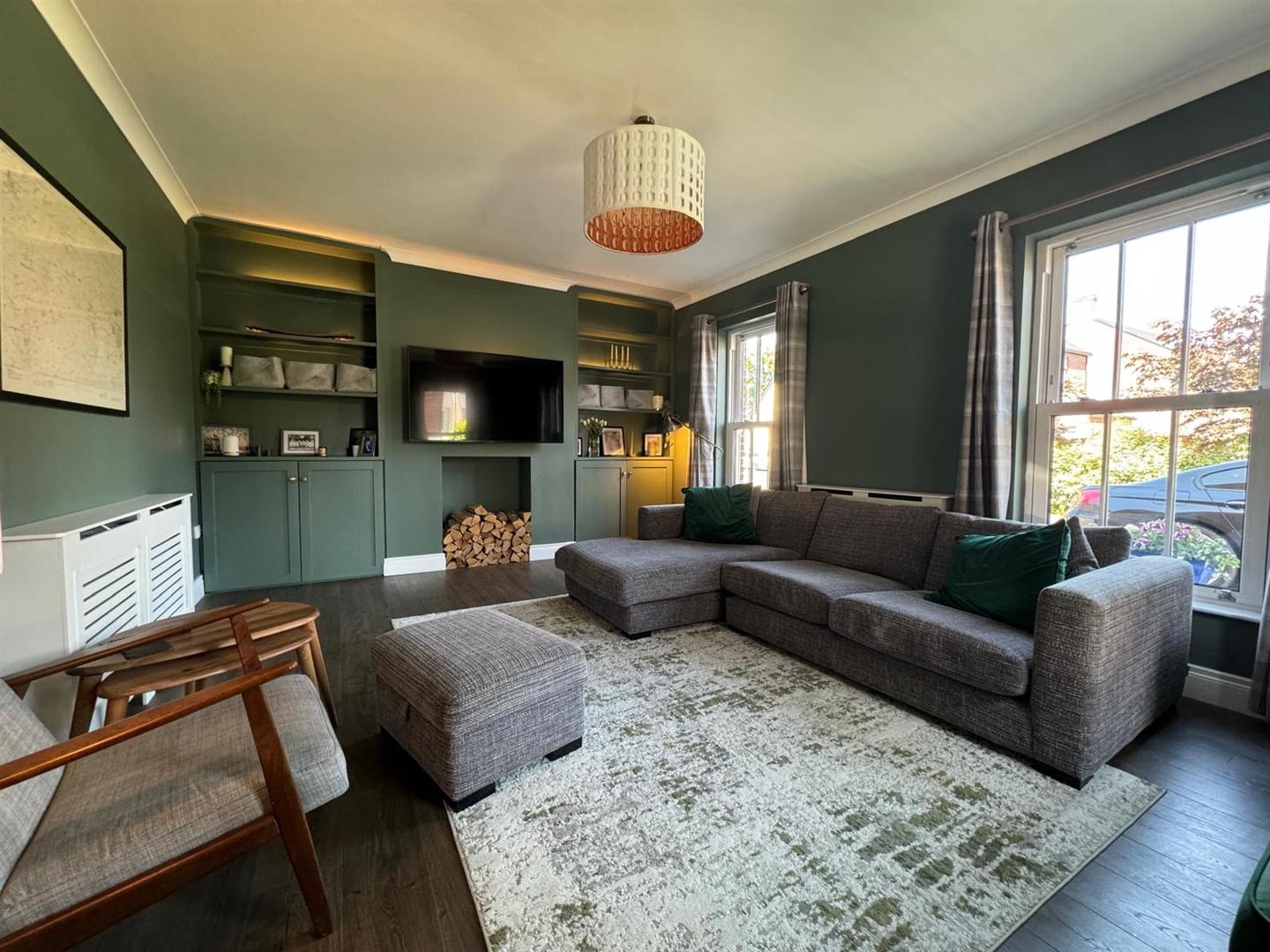 Lounge with dual aspect and PVC triple glazed sliding sash windows